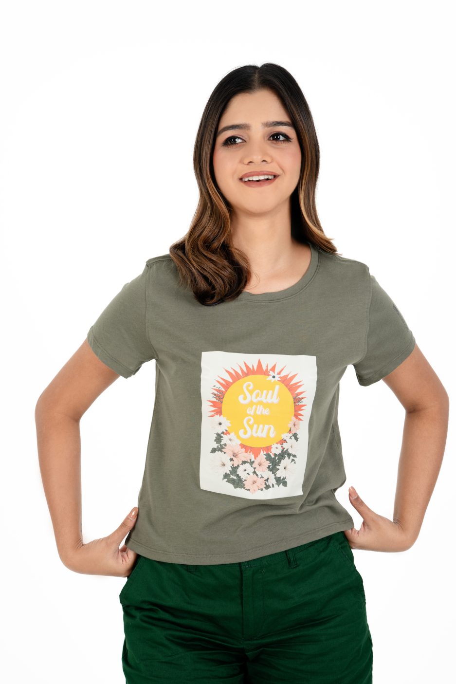 Boho Bliss Printed Crew Neck T-shirt – A5 Moss Green